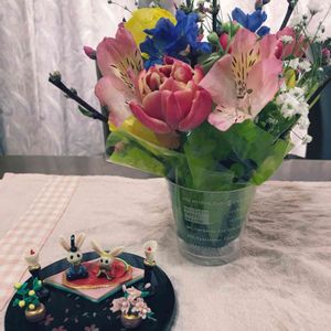 食卓にお花1つで オシャレにテーブルコーデ。 気分もゴージャスに… 食事中もHappy。