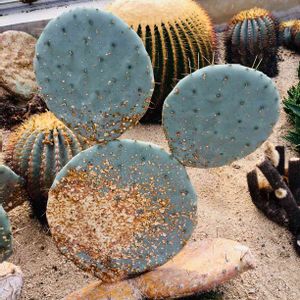 【キンシャチ(金鯱)】 メキシコ原産、サボテンの王様と称される巨大玉サボテン。 高さは最大で1m以上に達し、寿命は最長で30年程度と推測されている。 鋭い棘は長く直線またはわずかに湾曲して黄色味を帯びる。 20年以上経た個体のみ、頂部の冠付近に小さな黄色い花をつける。 下関市立園芸センターにて