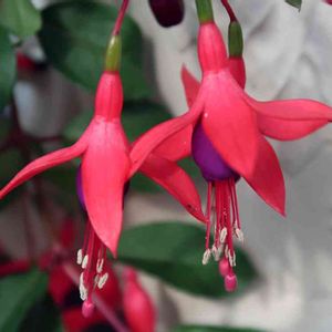 2月2日 今日のお花『フクシア』です。 【フクシア】 中南米亜熱帯地域原産、アカバナ科の常緑低木。 下向きに咲く上品な花姿から、貴婦人のイヤリングと呼ばれます。 花形は一重咲きから八重咲きまであり、花の大きさは1cmにも満たない小輪から8cmを超える大輪までと多種多様。 樹高:30~150cm、開花期:4月~7月中旬、10月中旬~11月 花色:白・赤・ピンク・オレンジ・紫 picは、日本で作られ、暑さ寒さに強くて育てやすい、最もポピュラーな品種「エンジェルス・イヤリング」 下関市立園芸センターにて。