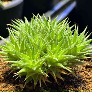 デウテロコニア ブレビフォリア ssp クロランサ ホームセンターにあったナゾの植物!(←自分が知らんだけ) 調べると、アルゼンチンの乾燥地帯に自生するパイナップル科の小さな植物だった。 ブレビフォリア←短い葉 SSP.←亜種 クロランサ←緑花 デウテロコニア属の短い葉に似ている緑花 なんのこっちゃ! ディッキアを小さくしたような風貌で、葉には鋸歯もあり、触ったら硬くチクチク痛いのも似ている。 成長は遅いらしいが、群生していくらしい。 良心価格のカクタス長田さんの植物は財布に優しいな❗️