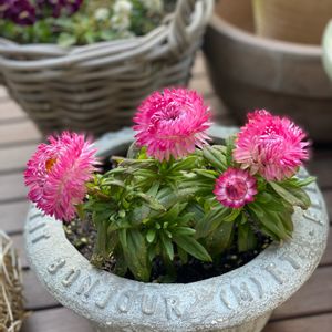 ヘリクリサムのお花が、次々と咲いてきています ✿ᵕ̈*ෆ.*・゚ すでにカサカサで、ドライになったお花みたい (❁*ᵕᴗᵕ )゚・*:.。❁