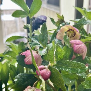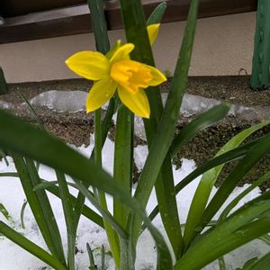 去年は咲かなかった花が一つだけ咲いてくれました💖 朝のうちはあられのようでしたが雪で花を隠してしまいました⛄⛄⛄❄️❄️❄️