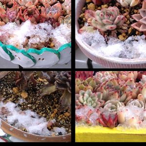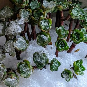 おはようございます。◕‿◕。 とうとう降りました💦 ビニールと不織布かけたけど、ガッツリ雪がかかってました。 囲い方が甘かったわ。 室内に入れて雪解け待ち。 アエオだけど大丈夫かな(☉。☉)!