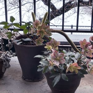 えっ!雪すごいんですけど‥。 積もるって言ってたっけ? 何にも準備してないから、とりあえずラックスだけは軒下に入れてきました。すでに5センチは積もってる。 窓のクリスマスローズは雪もあまりかからず元気そうです。 紫陽花の新芽折れないよね‥。 今日は有休だから出かけようと思ってたのに。1日家かな‥。