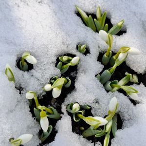 今朝のスノードロップ 雪の中でも立ち上がってきましたよ