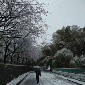 いつのまにかさっきのpic 99になってる(゚o゚;; 記念の100pic 異常気象中の❄️景色にしました すぐ近くの公園の桜の木🌸