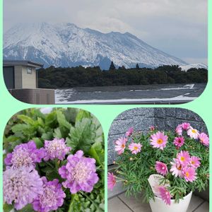 こんにちは👋😃 今日も雪❄️です 流石に今日は降りませんが、昨夜はびっくりするほど降りました~🥶 朝が走れないと思って、昨日の内に仕事場に行きました😁 朝が早い仕事なので、こんなときが、困ります😭 桜島🌋はしっかり雪を被りました🥶 暫く溶けないかも😭 スカビオサとマーガレットはちょっと軒下に避難していましたので、雪を避けられました🎵 まだまだ寒波は居座るようです😱