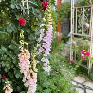 ①ジキタリスをここに移動したら今年はよく咲いてくれました バラと共演できて嬉しい🥹 ②ジキタリスがどんどん減ってたので一昨年買い足したアプリコット色可愛い😍 ③昔からある古株ジキタリス🥰 ④ルージュピエール🌹とお似合い☺️