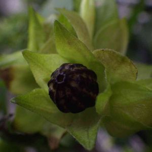 オシロイバナの果実(種)です。 黒い種を割って見ると中におしろいのような粉が入っているのでこの名に、子供の頃顔につけて遊んだものです😊