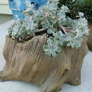 寒いですね~!! 仕事が、休みなので、 日中、草取りと、多肉ごとを 少ししました! GSの あくびさんのを 参考にさせていただいて、 ついにーー!! やってみました~! 念願のフェイク流木の鉢に 白雪ミセバヤをin!! はりきって2つ 買っちゃいまして、 もう一つには、スマロを 植えてみました!後ろに ちょいちょいと、かくれんぼ しておりますが(*^_^*) ダイソーのフェイク流木の 鉢、もうひとまわり 小さいのも売ってて、 また、買っちゃいそうです~😄