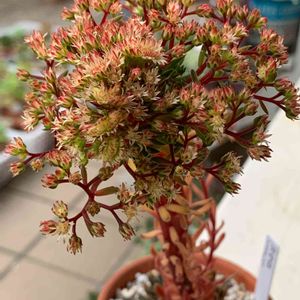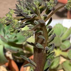 花が咲いたら困る2人に蕾😱 左*愛染錦 全斑で真っ白の子から蕾、1番大きかったのに、枯れる準備なのか白い葉がポロポロ取れて、小さくなってる😓 右*スマロ(四馬路) 綴化になった部分を✂️したら、沢山の花茎😳 生命の危機を感じたのか😆
