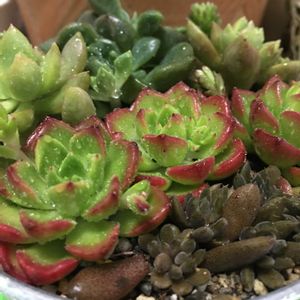 今日は16℃の予報だったので、 100均産やら状態の良くない 子の植え替え。 土いじり楽しいな😆💕 左上はアエオニウムの愛染錦 ではないかと思うのですが、 どうでしょう? アエオは冬避難させられない からと避けてきたのに、斑入りの 魅力には勝てなかった😅💦 右上の茜の塔錦も、 フォロワーさんのところで こんな姿になるのを知り、 出会えたので即決❗ 他の子も成長が楽しみです😊