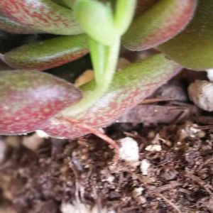 ミニ苗が鉢の中でギュウギュウだったので植えかえを…。 根元にお子ちゃまが💓