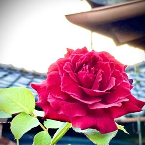 8/28 4年目の夏の赤いバラ「きむ」(鉢の名前)💕 涅槃バラ(勝手に命名)も相変わらず真横にマッツグ我が道を突き進んでます。 夏バテで傷んだ葉っぱも、だいぶ綺麗になって来ました💓えらいえらい🤗