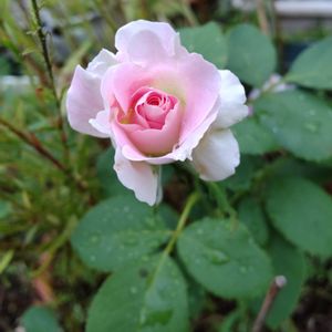 7/18 暑中お見舞い申し上げます。酷暑を無理なく乗り越えていきましょう。 去年の秋にゲットした見切り品のバラ鉢フェローシップ「むねちか」(鉢の名前)💕 春になってからはシュートを2本も出してスクスク育っているのだけど、どうやらブラインド枝のようで、身の丈50センチで一度カット、今日は身の丈80センチになってる😅 傷んだ葉っぱの鉢が多い中、この子の葉っぱは綺麗なので、切っちゃうのがためらうところ。しばらくは様子見です。。