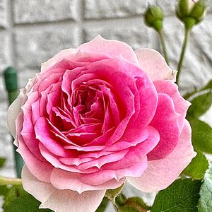 7/17 ピンクのバラの挿し木っこ「こなみ」(鉢の名前)💕 蕾は極力摘みまくっているというのに、人の目かすめて、あっという間に咲いていた。えらいえらい👏