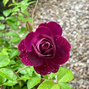 今日は既に朝から雨、 1日中の☔️予報です 慌てて開花した鉢バラさん達を軒下に移動しました💦 雨粒をまとったバーガンディアイスバーグさん開花しました🌹 このお色… 大人っぽいですよね