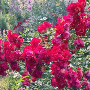 ミニバラのレッドロマンスが満開です🤗 垂れるように咲くので、鉢植えだと溢れるように咲いてとても絵になります❣️