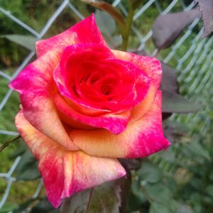 🌹アレックスレッド 花径15cm 大輪の木立樹形のハイブリットティーです 150cmくらいになりますが、横に広がずに すくっと姿勢良いので鉢植え🪴でも育て易いです☺️ ①昨日、雨が降り始めた頃撮りました☔️ ②2日前の表情です ③今朝の撮影 暑くて☀️開ききりました ④違う角度から