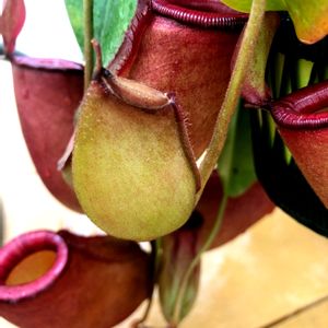今、一番手に入れたい植物 食虫植物 ネペンテス・レディラック 赤い部屋の中に入ってみたーい。 誘われる虫の気持ちがわかります。😌 入ったら、溶け始めると思います。😱