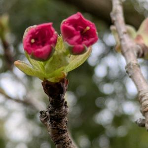 こんにちは(*^^*) 今日はいいお天気でして、網戸にして家中にも春の空気を入れています。 皆さんの処はいかがですか? #GSオモロ倶楽部 と #あっ火曜日 発動中です。 カンザン(詳しくは下記参照)の開き始めは、なんとも面白いと思うのです。 宇宙人👽か、パラボラアンテナみたい🤣🤣 【カンザン】 バラ科サクラ属 日本原産 江戸時代、オオシマザクラを基に生まれた、栽培品種のサトザクラ群のヤエサクラ 別名セキヤマ (これはカンザンを漢字で書くと、関山と書くことに由来する) 花期は4月頃 農紅色の八重咲きで花弁数は20〜50枚 花と葉が同時に展開し、若葉は赤い。 雌しべが2本、葉化しており、花の中心から突き出ている。(内、1本しか見えないけど写真の時期が判りやすい) オオシマザクラの花弁は白いが、色素のアントシアニンの影響で稀に僅かに紅色に染まる個体があり、散り際の低温刺激でもそれが濃くなることがある。 通常の野生状態ではこのような発色の制御がなされるが、選抜育種の最中に突然変異が起こって紅色の個体が生まれ、ここからカンザンが誕生したと考えられている。