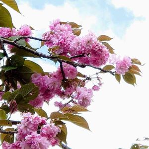 🌸🌸カンザン🌸🌸 八重の桜🌸🌸 他の八重桜よりもちょっぴり濃い目のピンク色💕 葉っぱも山桜みたいに茶色です😊