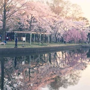 ちょっと早めの夕食の後に、青森市の合浦公園に散歩に行きました🎶 水面に映る風景がとても綺麗だったよ✨😊
