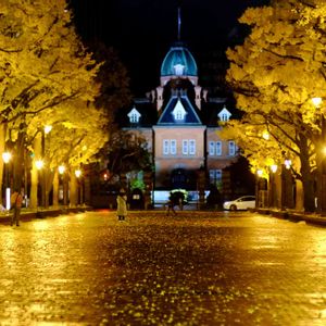 イチョウ並木と北海道庁旧庁舎 金色の道 札幌市