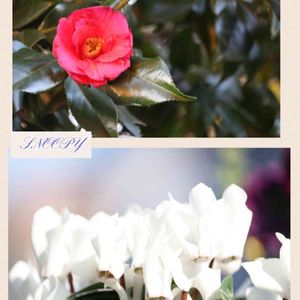 昨日のお散歩路で撮った🌺椿🌺さんと 今日の庭で撮った 🤍ガーデンシクラメン🤍さんです 赤色と白色❤️🤍です