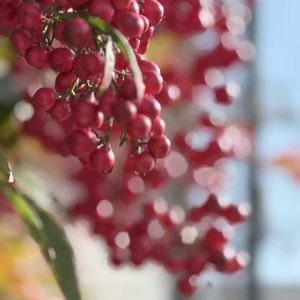おはようございます。 午後の光を浴びてキラキラな ナンテンの実。 温かい日曜日でした。