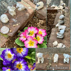 散歩コースで可愛い花と置き物を 見つけました