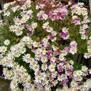 どこから飛んできたのか⁇… 菊らしい芽?を春先に植え付けたら こんなに可愛いブーケ💐のように花が咲きました (咲くまで確信はなかった) 菊もまとまって咲くと花火みたい♪ 発見💡です (もう少し遅く咲いてくれると お正月に使えるのになぁ) お隣さんの垣根の下で 同じような菊の花が咲いてました 飛んで飛んで 我が家に来てくれたのね~ 嬉しい繋がりでした~🤗