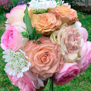 こんにちは⋆̩☂︎*̣̩ 開花9号🌹 ピエールドゥロンサールです(♡´▽`♡) これから明日にかけて 大雨の予報みたいなので 沢山カットしました! いつもお世話になっている 美容室のお姉さんへプレゼントします💐 エメラルドアイルがすごく 良い香りです̋ ੯ꔷ̀͡ᓑ\クンクン♪♪✨✨