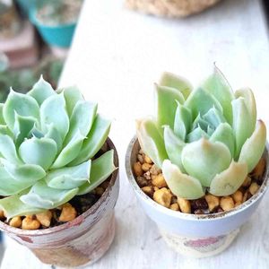 夏越し成功したエケベリアpart①です🙂 韓国苗はYeomiwol、赤い星、ロックキャンディの3株です💖ビアントとロックキャンディは9月の暑さで葉にダメージを受けました😢 パールフォンニュルンベルクは徒長してる?!😳このまま?それとも胴切り??🤔シムランスも夏の暑さで下葉が減ったし、3株あったのに2株が☆に〰😭可愛いのに😢