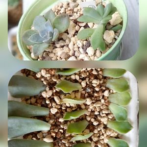 ずーっと苦手だった葉挿し。 今年は頑張ってお世話(水やり)しました😄 画像は春になり始めに葉挿しした少し大きくなった葉挿しっ子たちです。 今年は☆にしてしまった多肉たくさんで💦 どうにか生き残ってもらおうと何種類か葉挿ししたけど、葉っぱ自体がジュレてダメになったり、根も芽も全く出てこないのや、根っこだけが出てるのや、何ヶ月もかかってやっと根と芽が最近出てきてくれた子など😅多肉の種類によってすぐ芽が出るのとなかなか出ないの差が激しい💦 今までちゃんとやって来なかった事なので日々勉強ですね😆 寄せ植えに入れるためにこれから色々葉挿しも頑張ってやっていこうかなぁ🤔と思います😅 問題は置き場所がない事です😆葉挿し専用の棚が欲しいー😊 実は冬までに庭に小さな多肉小屋を作る計画を立てています😁本当に完成するのかわかりませんが💦 なので、今まで使っていた棚が空く予定なので葉挿しもたくさん置けるかなぁ…色々夢が膨らみます🤭
