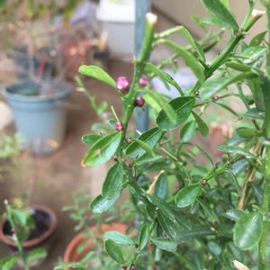 フィンガーライムの花芽が付きました。✌️ 植え付けして安定したみたいです。 これからどうなるか楽しみです。😃