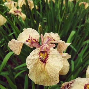 昨日の花鳥園から🦆 珍しい色でちょっと渋い黄色の菖蒲🌱 中心にうっすらと入る赤がまたかっこいい…✨✨