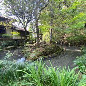 『加茂荘花鳥園💜』 中の裏庭も池があったりして 情緒あふれています❣️ ホッとする空間です✨✨