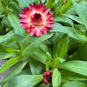 サントリーフラワーズさんのコロロ ブラッドオレンジ🧡 蒸れないよう葉っぱをちぎり取る程度のお手入れで育ってくれています。 カサカサのお花が可愛い オージープランツだそうですね🌱