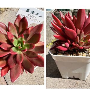 多肉アンさん苗 初お迎え♥️ 七福美尼交配可愛すぎんか😍 この子葉挿しどうかなぁ💭 めっちゃ紅葉してるし、 七福美尼遺伝子で葉挿し難しそう🥹