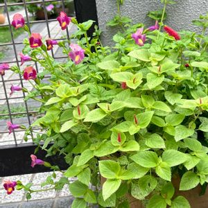 おはようございます🌤️ 今朝のお花は トレニア ムーン マジェンタ 少しダークな色合い🎶 その横は斑入りのキャットテール お気に入りの欠けた鉢 夏の定位置に入りました😊 これから赤いお花が咲いてきます❤️ トレニアも垂れて咲くみたいなので 鉢は消えそうです😊