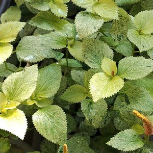 アカリファ キャットテール バリエガータ(…早い話が斑入りのキャットテール😅) 久々にMFCで見かけても購入するのを我慢していましたが、斑入りではないキャットテールをカゴに入れている方を見かけたら、なぜかタガが外れて購入を決めました …何年ぶりだろう…🤔 一見ハダニ被害に遭った葉っぱのように見えますが、緑少なめの散り斑です🌿 明るい日陰でのんびり育てます👍