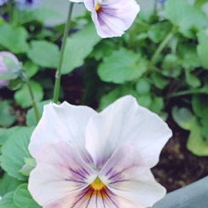 白系のビオラさんかと思ってたら 後日紫色になってました 色の変化が楽しめて毎日わくわくします 🤍💜🌱(◍´꒳`)b🌱💜🤍