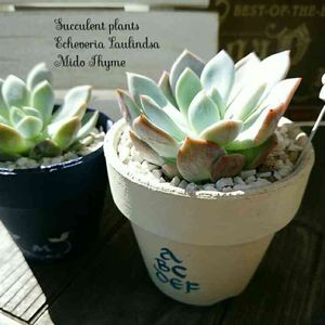 こんにちは!😊 暑かったですね~ 今日のpicは、引き続き、トロピカルガーデンさんのエケベリア祭り(シマホ)で、ルノーディーンと一緒にお迎えしました。 エケベリア属 チワワエンシス錦です。 リメイク鉢は、幸せの青い鳥を書いてみました。 まだ、試作段階ですので、改良が必要です。 文字が薄かったですね、、、😅