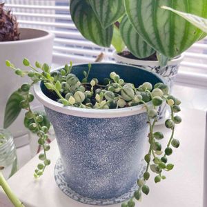 窓辺も賑やかに♪(・∀・) ついに手を出してしまった… グリーンネックレス‼︎ 多肉は水やりのタイミングが難しくって今まで100%枯らしてるから手を出すつもりはなかったんだけど… 斑入りとグリーンネックレスの可愛さに負けてしまった。。。 果たしてジャラジャラにできるか⁉︎ 2022年1番の挑戦かも← あとは、KPJさんとおなじようなタイミングでお迎えしたトラディスカンティア♡ うちの子はラベンダーです╰(*´︶`*)╯ 爽やかで可愛いー♡ ふたりともおっきくなってボリュームモリモリになってね(о´∀`о) あ!あと鉢は間に合わせの100均ダサプラ鉢だったので少しリメイクしてみました(๑╹ω╹๑ )