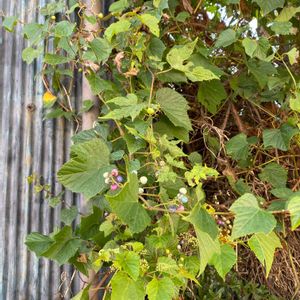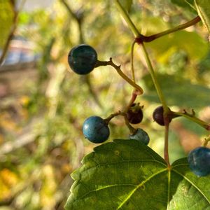 去年うちにやって来た山葡萄さん 受粉樹もないから実はつかないと思ってたら、今朝可愛らしいの出て来てくれてました😃 ちゃんと熟してくれるかな😊 楽しみです😊