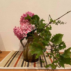 紫陽花ももう切る時期になり寂しいです。 紫陽花切っていて山葡萄の枝まで切ってしまったので、まだ綺麗に咲いている紫陽花と最後の花道と飾ってあげました。