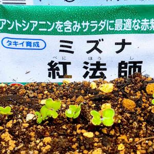 ミズナ紅法師 モニター当選してから 涼しくなりやっと種まきをしました🎵 9月16日 種まき 9月19日 可愛い芽がでました✨ プランターと地植えをしましたこれからが楽しみです💓 『みどりのまとめ』も頑張って後で投稿します🙋
