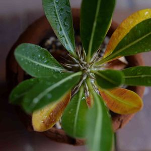 一応ホンソコで購入した子です。 外管理にしてから他のアデニウムは調子が良さそうなのですが この子は今年全然成長せず、葉も5,6枚しか出してくれませんでした。 葉の色も今年は少し違うような… 来年は植え替えしてみようかな