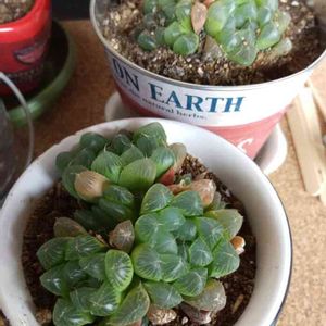 大型オブツーサさん、 お迎えから約1ヶ月。上が今日。 ちょっと成長して、 色艶?も良くなってきてる気が?😊 でも、やっぱりリメ缶にハオさんは良くないのよね?💦次回植え替えは、適した鉢に… しかし… やっぱりハオさん素敵。。 秋は、ハオさんリトさん中心に増える気がする…
